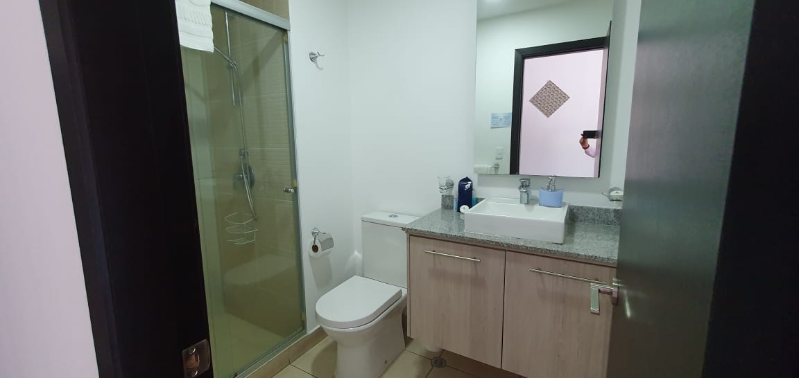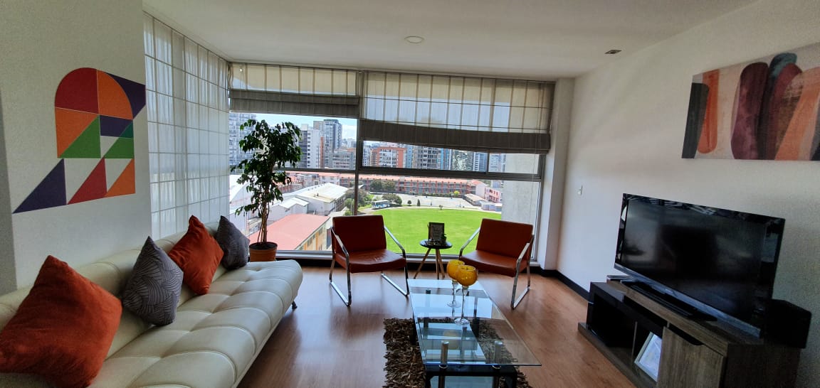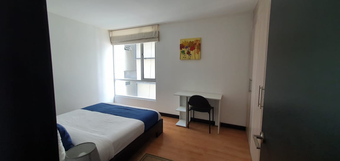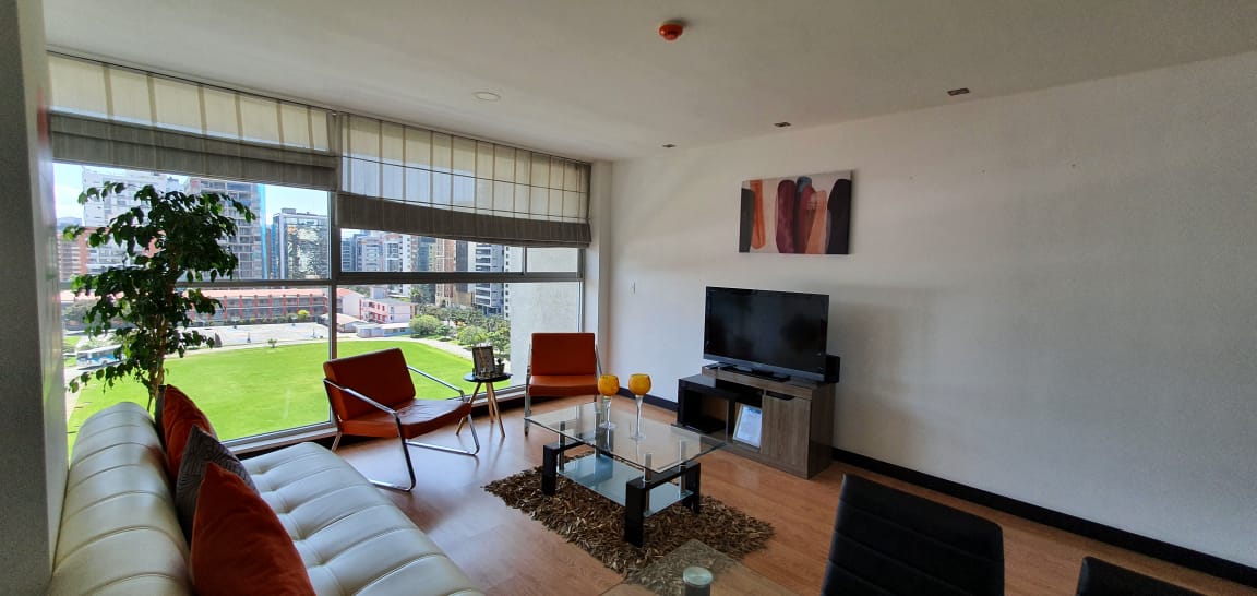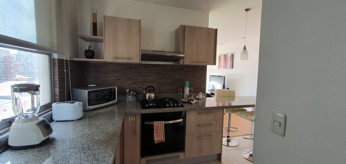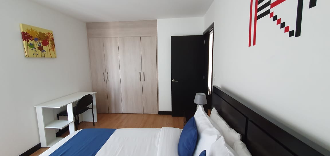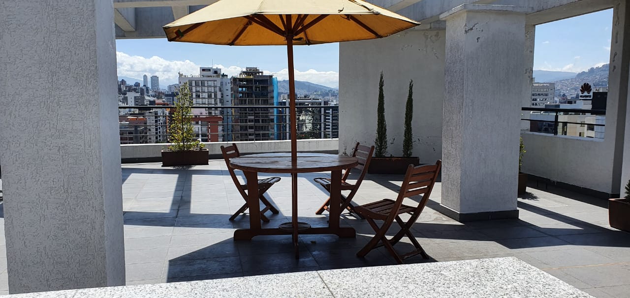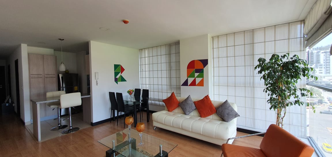 Ubicada en la calle Portugal y Republica del Salvador muy cerca de restaurantes, cafeterías, supermercados y el Parque La Carolina. Piso 8. Hermosa Vista, Elegante suite, sala, comedor con 4 puestos, cocina tipo americano, lavadora, secadora. Dormitorio con cama Queen y baño privado. Baño social, Tv por cable. Parqueadero