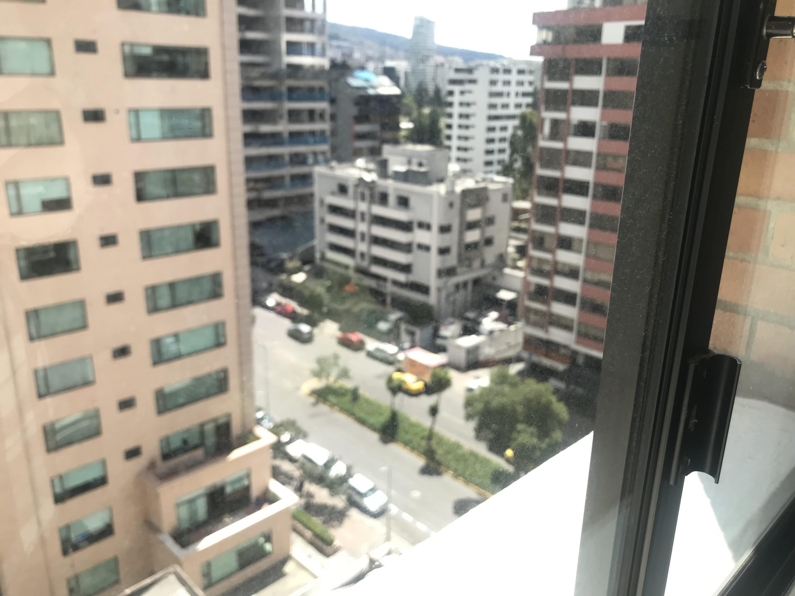 Cómoda suite ubicada en la Av. Republica del Salvador, a pocos pasos del Parque La Carolina. Piso 8. Vista a la ciudad. Sala, comedor con 4 puestos, cocina con menaje completo.. Dormitorio con cama Queen, Tv con canales de Cable. Parqueadero. El Edificio cuenta con piscina y terraza comunal. La lavadora y secadora son comunales (de pago)