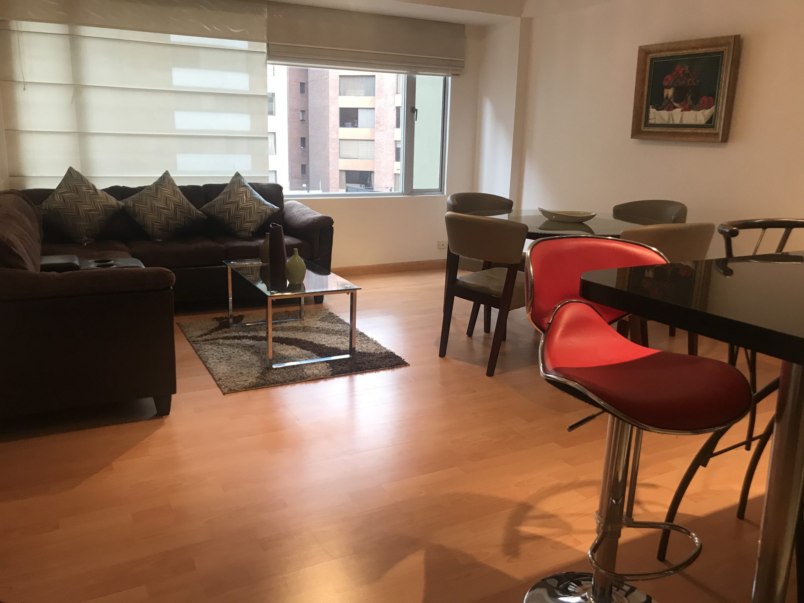 Cómoda suite ubicada en la Av. Republica del Salvador, muy cerca del Quicentro Shopping. Tercer Piso. Vista a las montañas. Decoración Moderna. Sala, comedor con 4 puestos, cocina tipo americano, menaje completo. lavadora y secadora. Dormitorio con cama full, Tv con canales de Cable. Parqueadero.